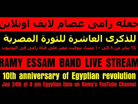 Ramy Essam Band Live Stream: 10th Anniversary of Egyptian Revolution Sunday 24th of January 2021 at 8 pm (CET) Band: Ramy Essam (vcl/gtr), Samuli Kivelä (gtr), Jesper Anastasiadis (bass), Aleksi Kinnunen (drs) Part of #RiskAndRebellion online symposium by Artists At Risk. https://artistsatrisk.org/riskandrebellion-programme-24th-of-januari-2021/?lang=en Setlist 1. Taty Taty 2. Fe Aahd El Zalem 3. Ed7ako Ya Sawra 4. Ana El Sa7y 5. Youm 25 6. E'eish, Horreya, A'adala'h Igtima'iya 7. Ya Askary 8. El ga7sh Wel 7omar 9. Mahnash Mn Dol 10. Mamnou3 11. Resala Ela Magles El Amn 12. Edrabni 13. Saura 14. Eshhad Ya Zaman 15. Ana El Shahid 16. Sa2alony El Nony 17. UA07 18. El Amiis El Karoo 19. Fe 3ahd El 3ars 20. Foul Caviar 21. El Horreya Lel Geda’an 22. Ya Habayebna 23. Lessa Bahinlha 24. Bauabet Taftish 25. No2at No2at 26. A7A 27. Hela Hela 28. Daboura W Short W Cap 29. 7arara 30. Segn Bel Alwan