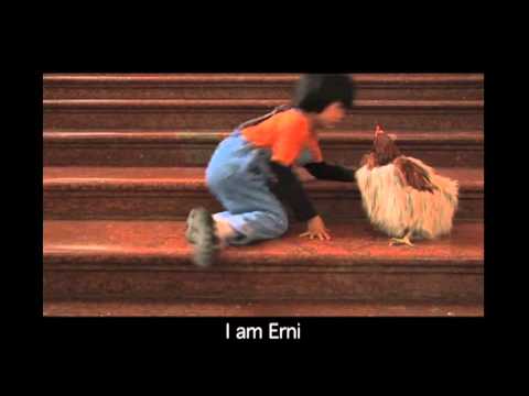 Based on the Carol Reed film 'The Third Man', Edgar Honetschläger's Erni unfolds in Vienna. Two Japanese women and a young boy wander around the city. From time to time the boy sees the figure of a chicken, Erni, appear, each time dressed differently. This short, which is part of a portmanteau film, was screened at the Aichi exhibition in Japan in 2005.